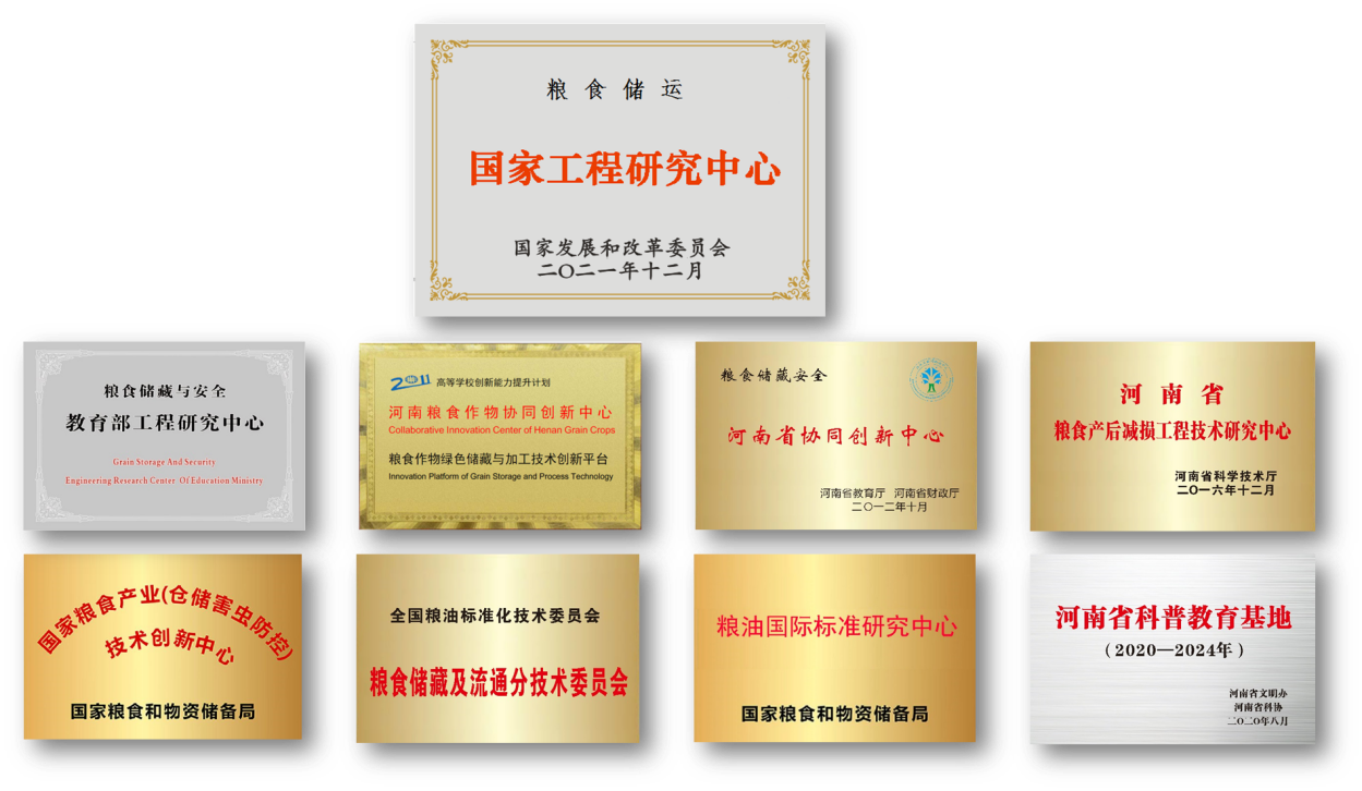 学院现有粮食储运国家工程研究中心(小麦)、粮食储藏与安全教育部工程研究中心、“2011计划”首批国家协同创新中心“河南粮食作物协同创新中心”、国家粮食产业(仓储害虫防控)技术创新中心、粮油国际标准研究中心(粮食储藏及流通)等十多个国家级、省部级科研平台,构建了国内外最完整的粮食储藏科研平台集群,设备总值近1亿元。