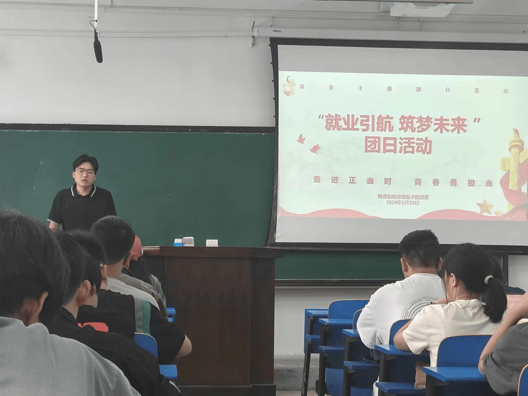 耿世钊向同学们介绍了自己求职和考取选调生的经历,向同学们介绍了中粮和中储粮的不同之处以及各个地方粮库的入职机会。并结合自身的经验,从考取选调生的题目组成、个人努力程度和心态等方面与同学们做了深刻的交流。