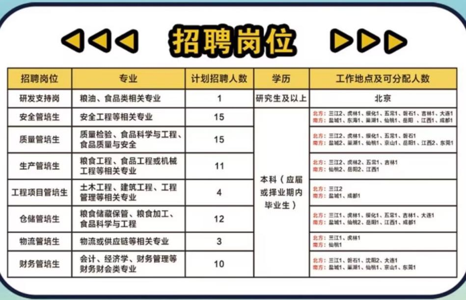 该项目由中粮粮谷大米管理部统筹。招聘通过初试、笔试及终面等流程,完成录用审批后签订三方协议。管培生工作地点将在录用前确定,各工厂名额有限,先签三方先锁定工厂名额。