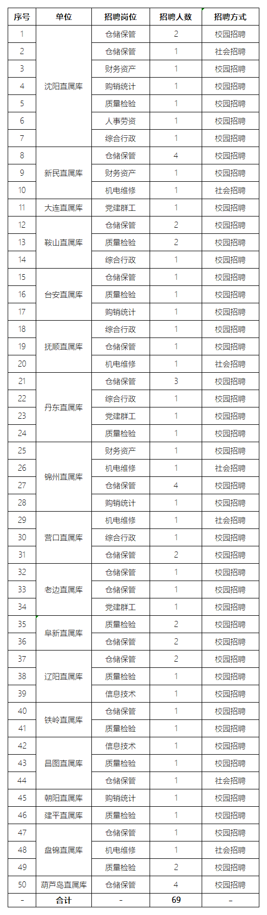 1.本次招聘为中储粮集团辽宁分公司辖区直属企业岗位。