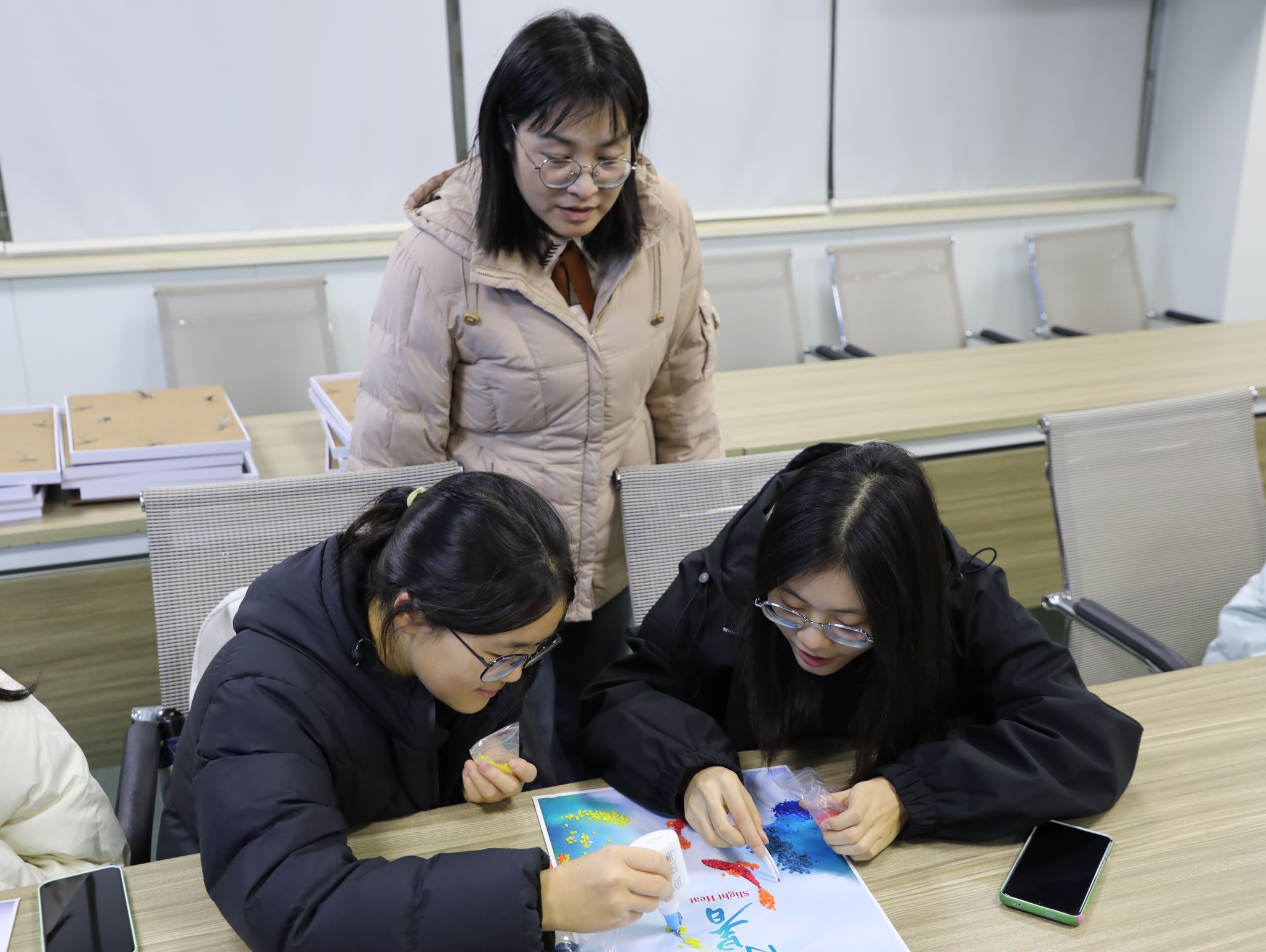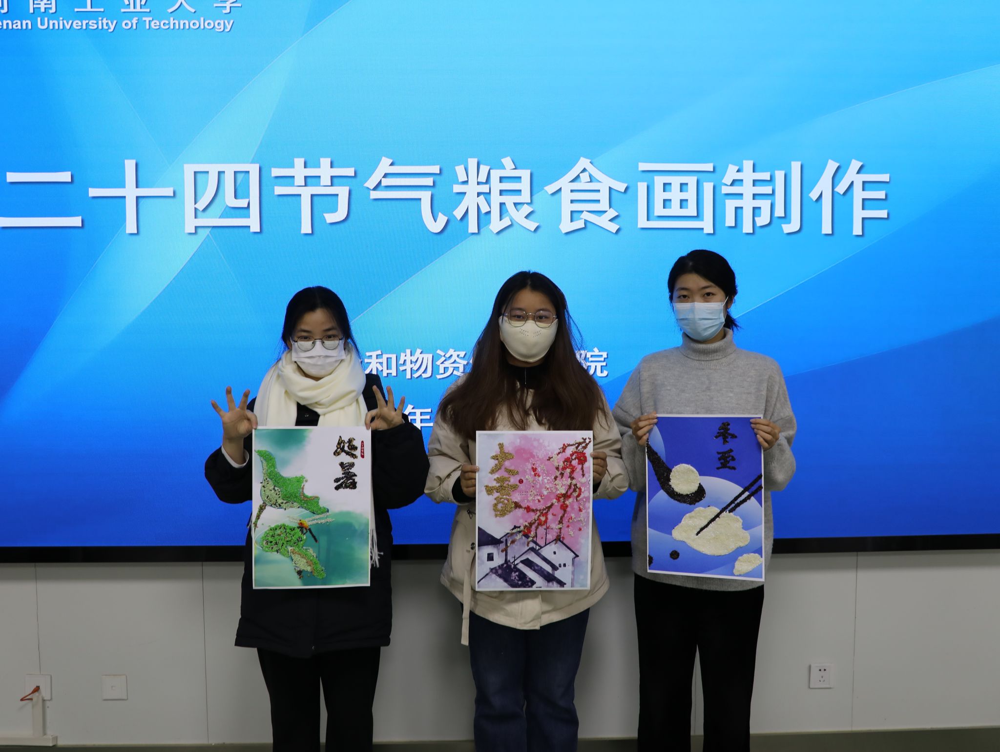 在40202举办“二十四节气粮食画制作”活动。学院团委书记刘宇畅、学工办主任马春艳和辅导员赵航以及活动志愿者们共同参加了此次活动。
