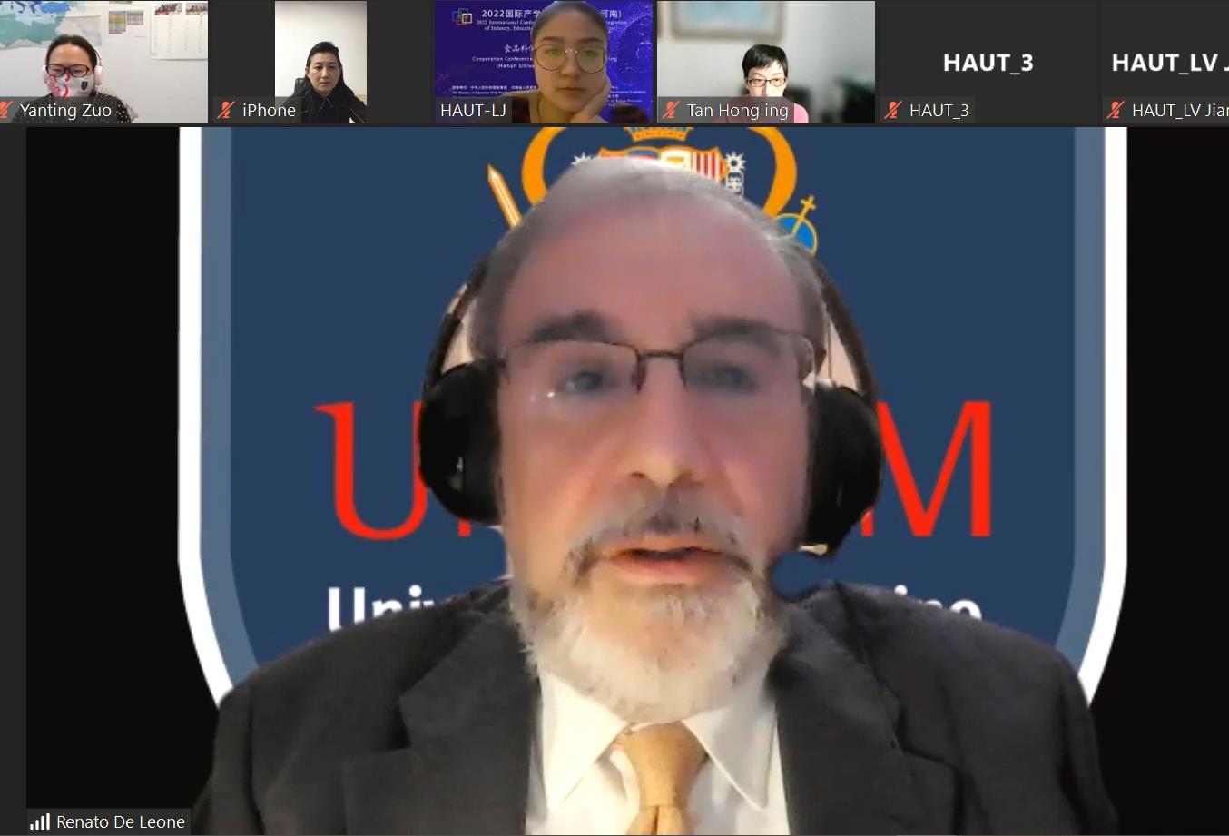 Renato De Leone在开幕式讲话中,首先介绍了意大利卡梅里诺大学,指出卡梅里诺大学一直与河南省食品科学与工程领域的高校保持着紧密的联系,希望在河南省教育厅的组织下,继续在该领域与更多高校紧密合作,深入交流,共谋发展。