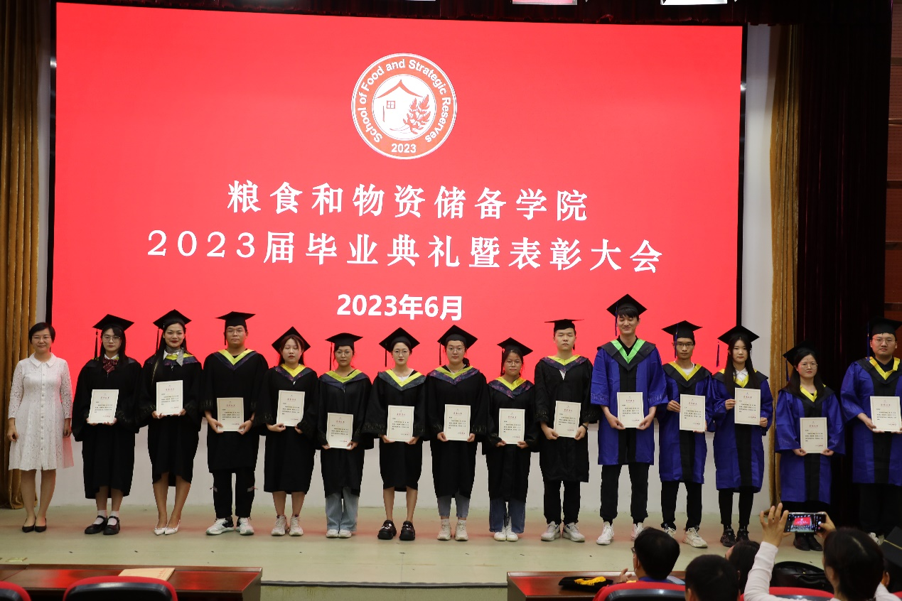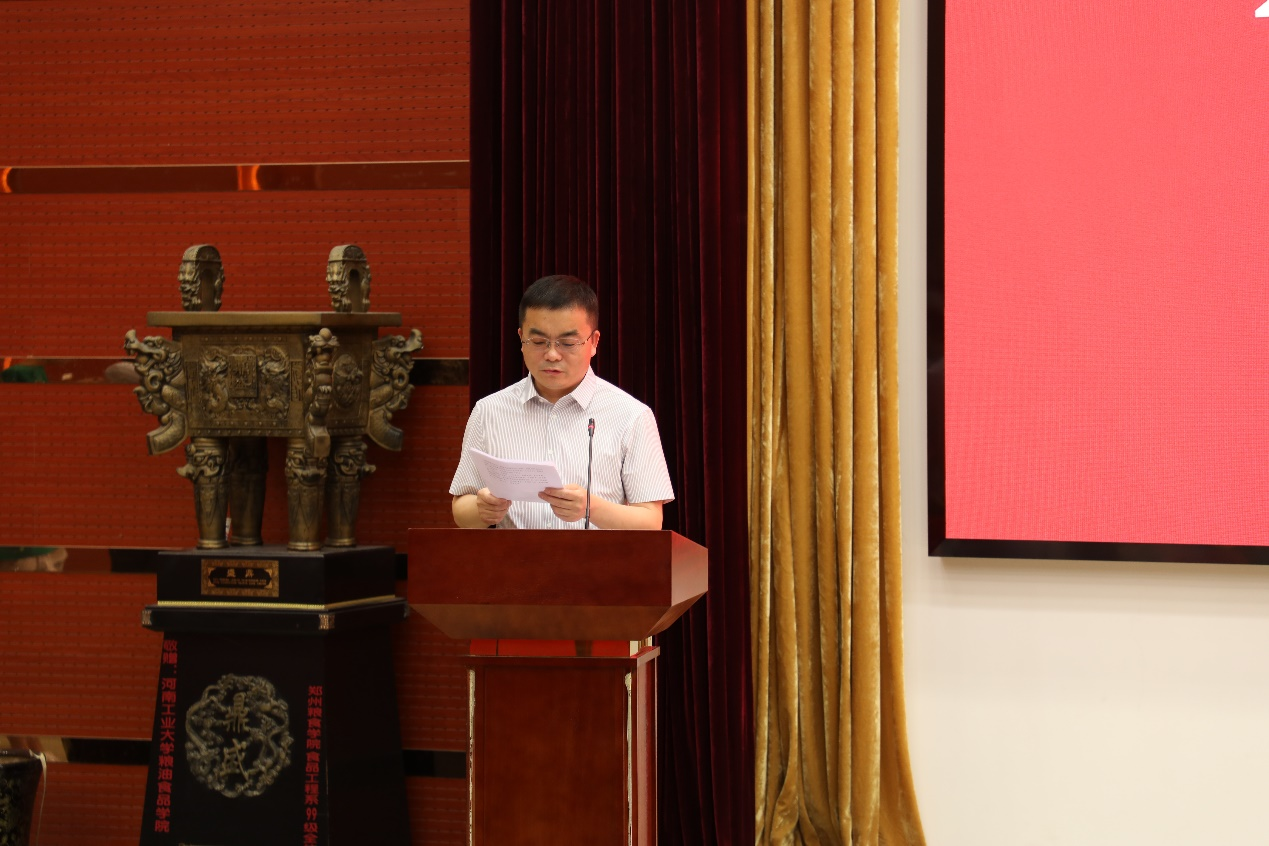 典礼在庄严的国歌声中拉开序幕。代辉亚代表学院致辞,祝贺同学们顺利毕业,并对毕业生提出希望:一是希望同学们爱岗敬业,踏实工作,勤勤恳恳,历练心智,在平凡的工作岗位上建功立业;二是希望同学们勤于学习,不断提高自身素质,早成栋梁之才;三是希望毕业生们铭记师生情,时刻关注母校的的建设和发展;最后,祝愿同学们心向朝阳、砥砺前行,做一个执着而努力的粮食守护人,在粮食行业中坚守使命,胸怀“国之大者”,服务国家粮食安全。
