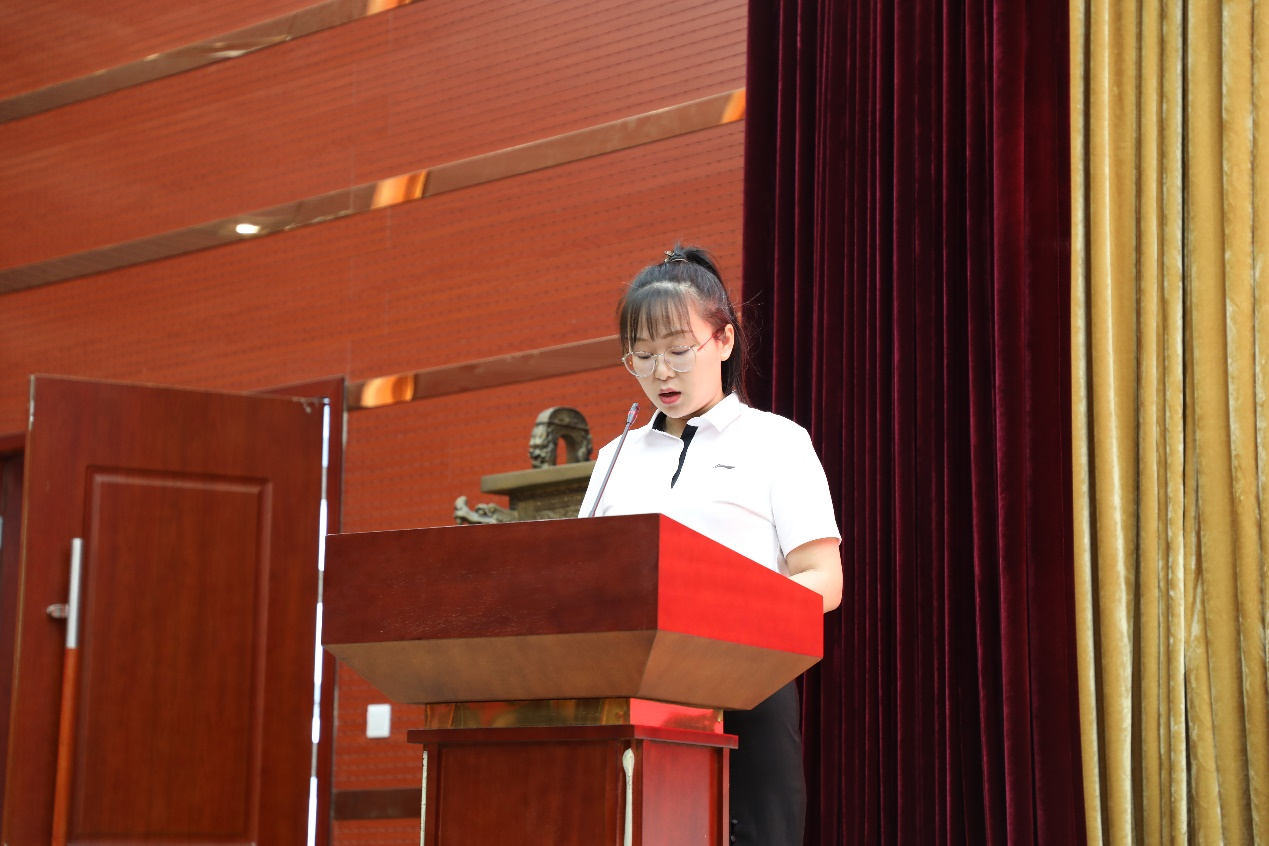 教师代表曾芳芳发言,对学生提出建议:一是继续保持开放的心态,不断学习和成长;二是敢于尝试新事物,不断挑战自我;三是相信自己的能力和潜力,坚定前行;四是关注他人,回馈社会。