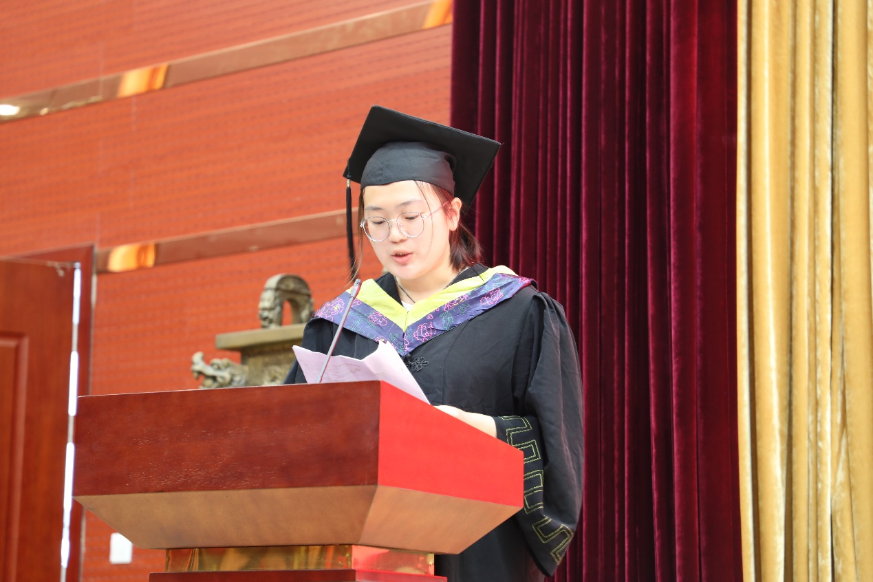 优秀毕业生代表曹仁杰、吴雯靓分别发言,表达了对母校的感激与不舍,对未来的憧憬与畅想以及坚定前行的决心。