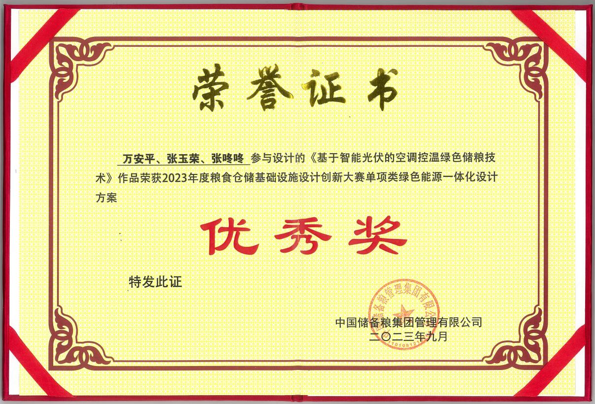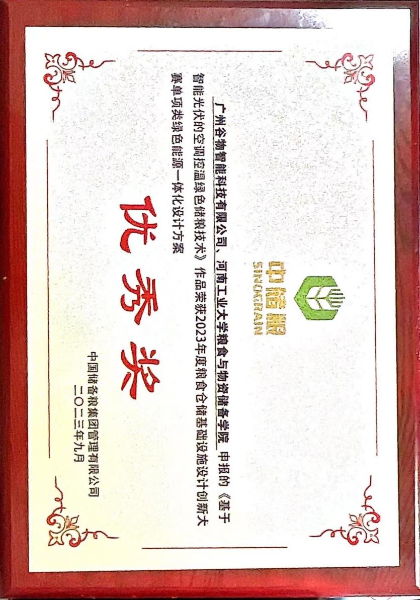 该方案达到降低空调运行成本,实现空调控温绿色储粮的“零”碳或低碳效果,已在广东、湖北、新疆等多个省份推广应用,经组委会组织的两轮的遴选和专家评审后,荣获优秀奖。