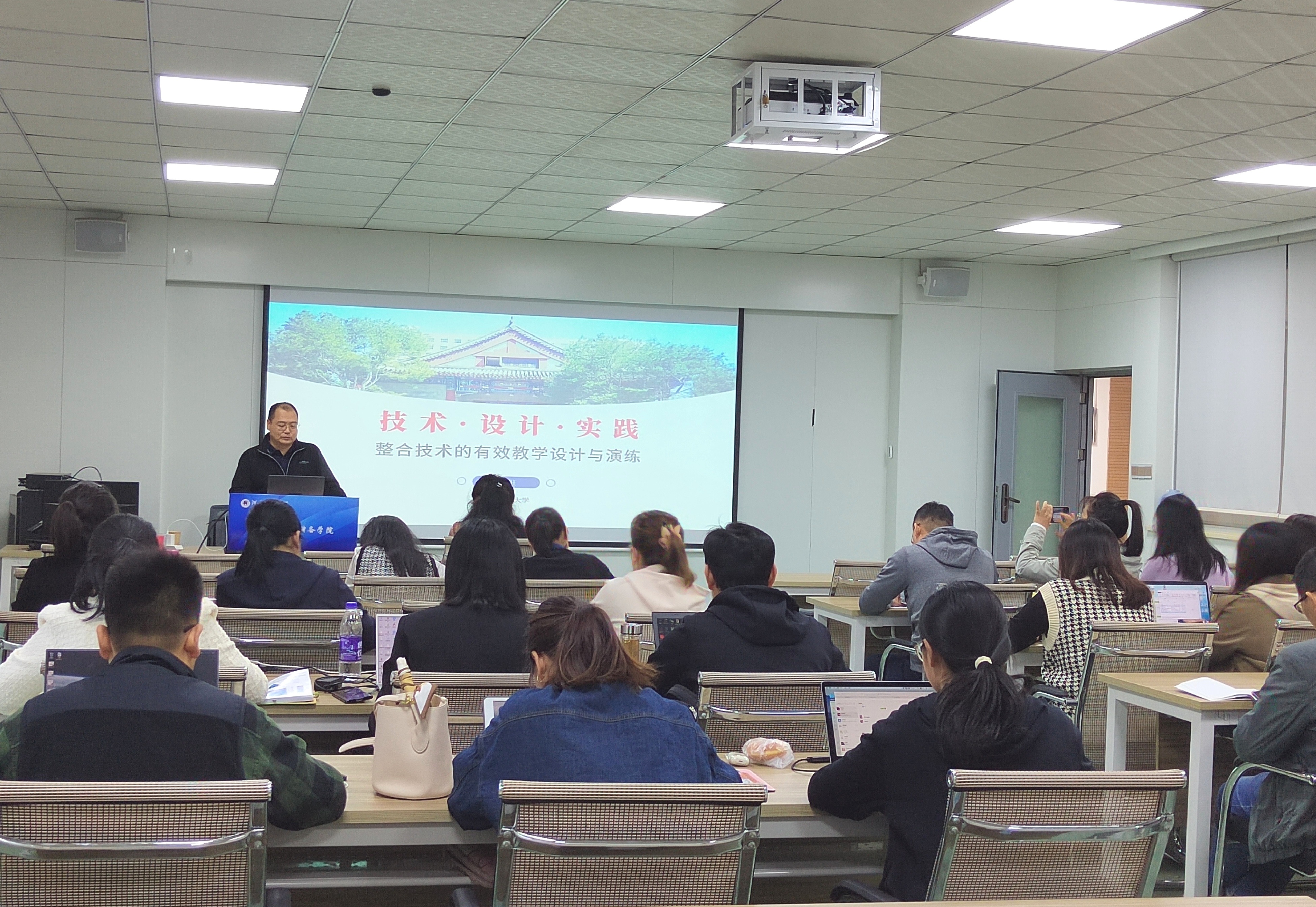 为提升教师教学能力,加强研究性教学,10月24日,学院在40202举办“整合技术的教学设计与演练”研究性教学工作坊,此次培训的主讲教师为中央民族大学林旺教授,学院全体教师参加了本次工作坊。活动由教学院长张玉荣主持。