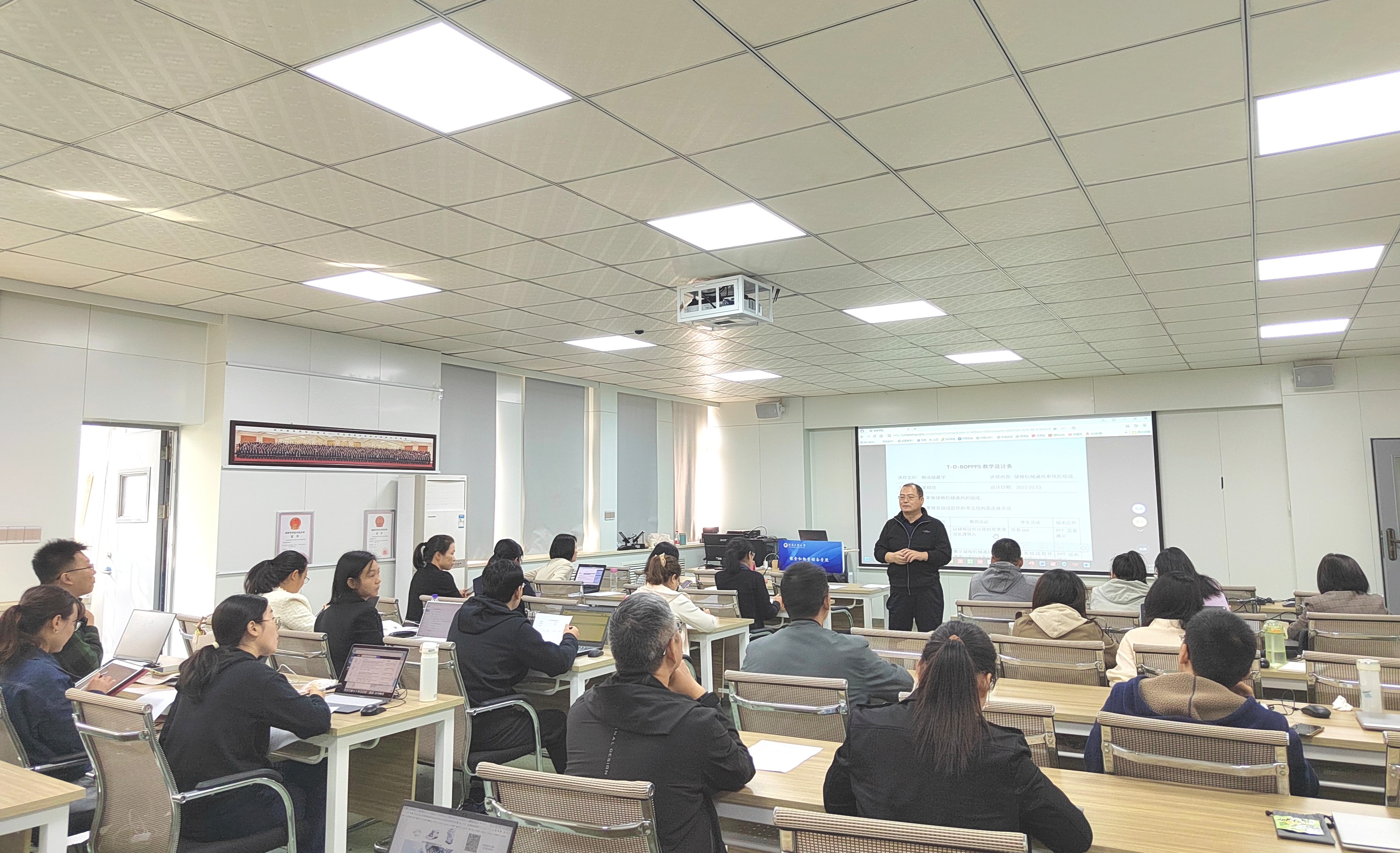 林老师将主题报告与务实操作相结合,讲授了研究型教学的有效性与核心理念,教学设计模型——BOPPPS的教学课件设计与制作,学习目标设计——SMART及数字教学模式的课堂教学等内容,并组织教师进行“T-D-BOPPPS教学设计表”实操活动。本次工作坊以学习通教学系统为实践载体,“线上+线下”相结合,围绕教师课堂教学核心能力,推动信息技术与教育教学的深度融合,把知识体系转换为数字体系,凝练出研究性教学融入教学的新路径。