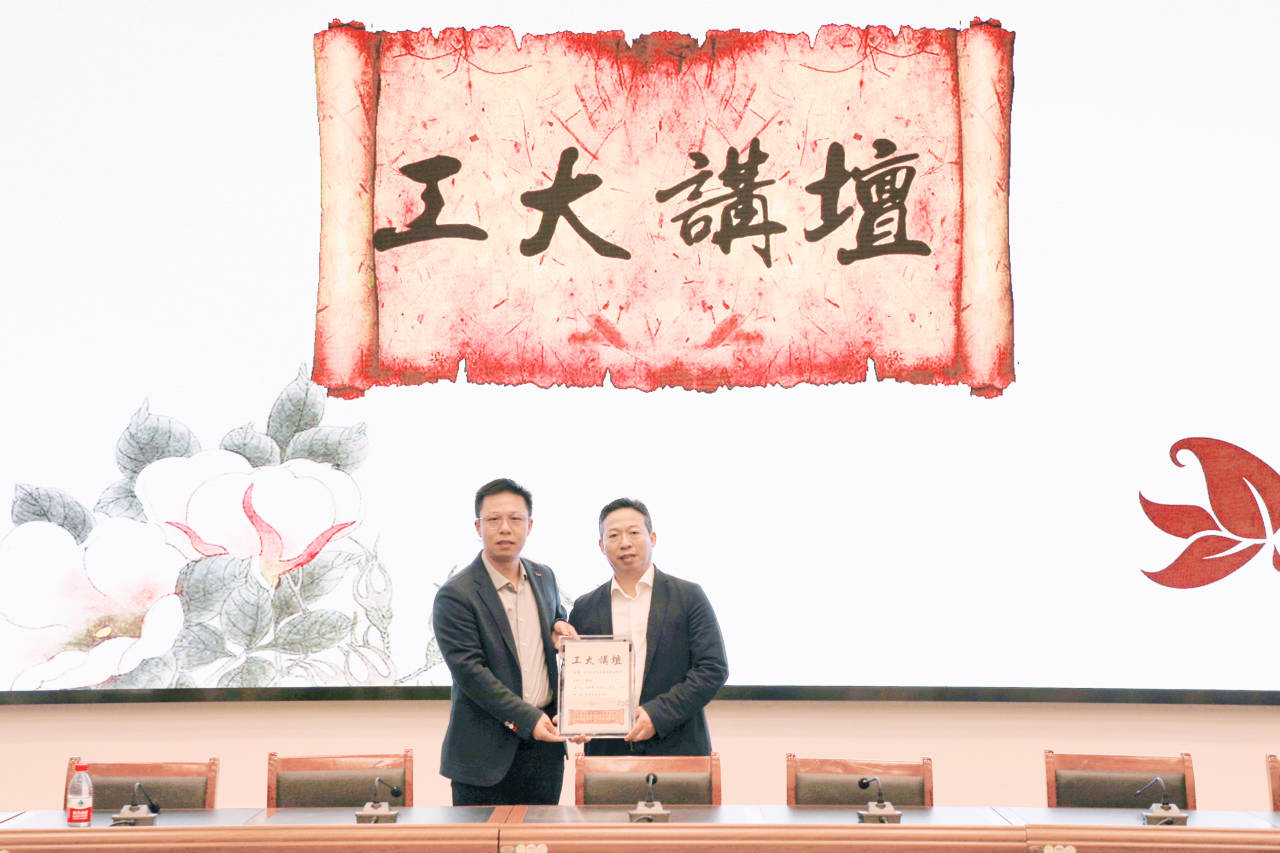 讲座伊始,刘昆仑对谭斌研究员来我校开展讲座表示热烈欢迎,杨伟超向谭斌研究员赠送了工大讲坛纪念海报。