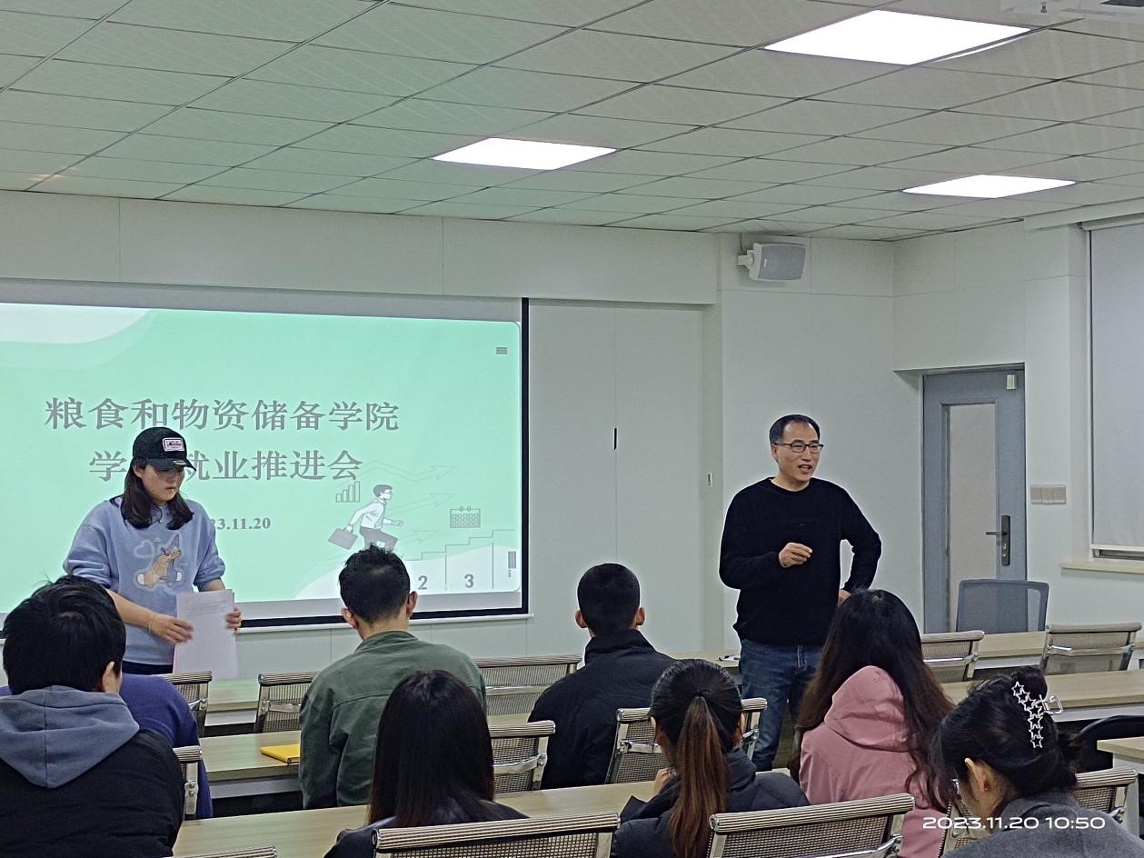 在40202举行全体研究生就业推进会,贯彻落实就业工作相关指示精神,进一步科学研判、分析形势,明确目标任务和工作要求,部署落实就业工作。学院党委副书记梁艳、党政办主任马军锋、学工办副主任马春艳、团委副书记朱子博、全体辅导员、全体毕业班研究生、及研究生导师白春启等参加会议,马春艳主持会议。