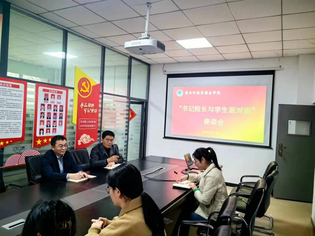 在40108会议室举行“书记院长与学生面对面交流”座谈会,党委书记代辉亚、院长刘昆仑、学工办主任马春艳及食工F2005班部分学生代表参加会议。