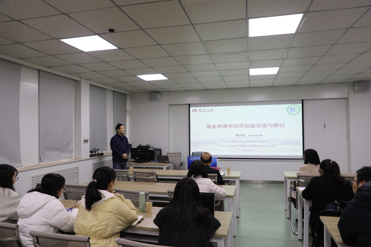 举办了国家自然基金项目申请经验交流会,邀请宁波大学食品与药学学院院长邵兴锋教授做了关于“基金申请书写作经验交流与研讨”的学术报告,第一会所