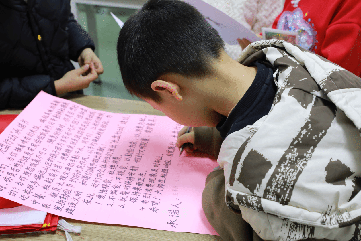 图为郑大实验小学学生签署《“光盘行动”承诺书》