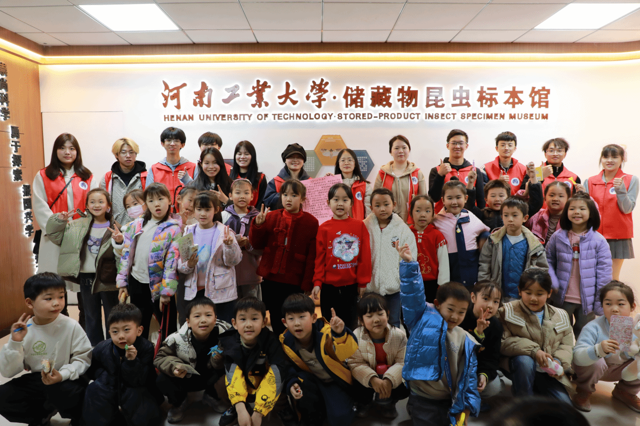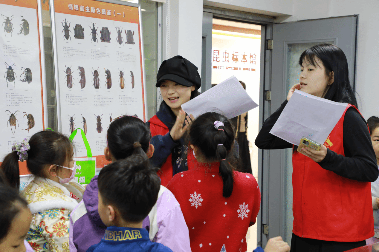 志愿者在粮博馆内带领小学生们学习粮食文化演变历史,感受中华民族五千多年的农耕文明及粮食文化的缘起及演变;在储藏物昆虫标本馆中,志愿者们发挥专业特长,带领小学生们参观储粮昆虫标本及模型,传播科学防治害虫理念,引导同学们关注“小害虫”带来的“大危害”,提醒小朋友在日常生活中要注重保护粮食、节约粮食。