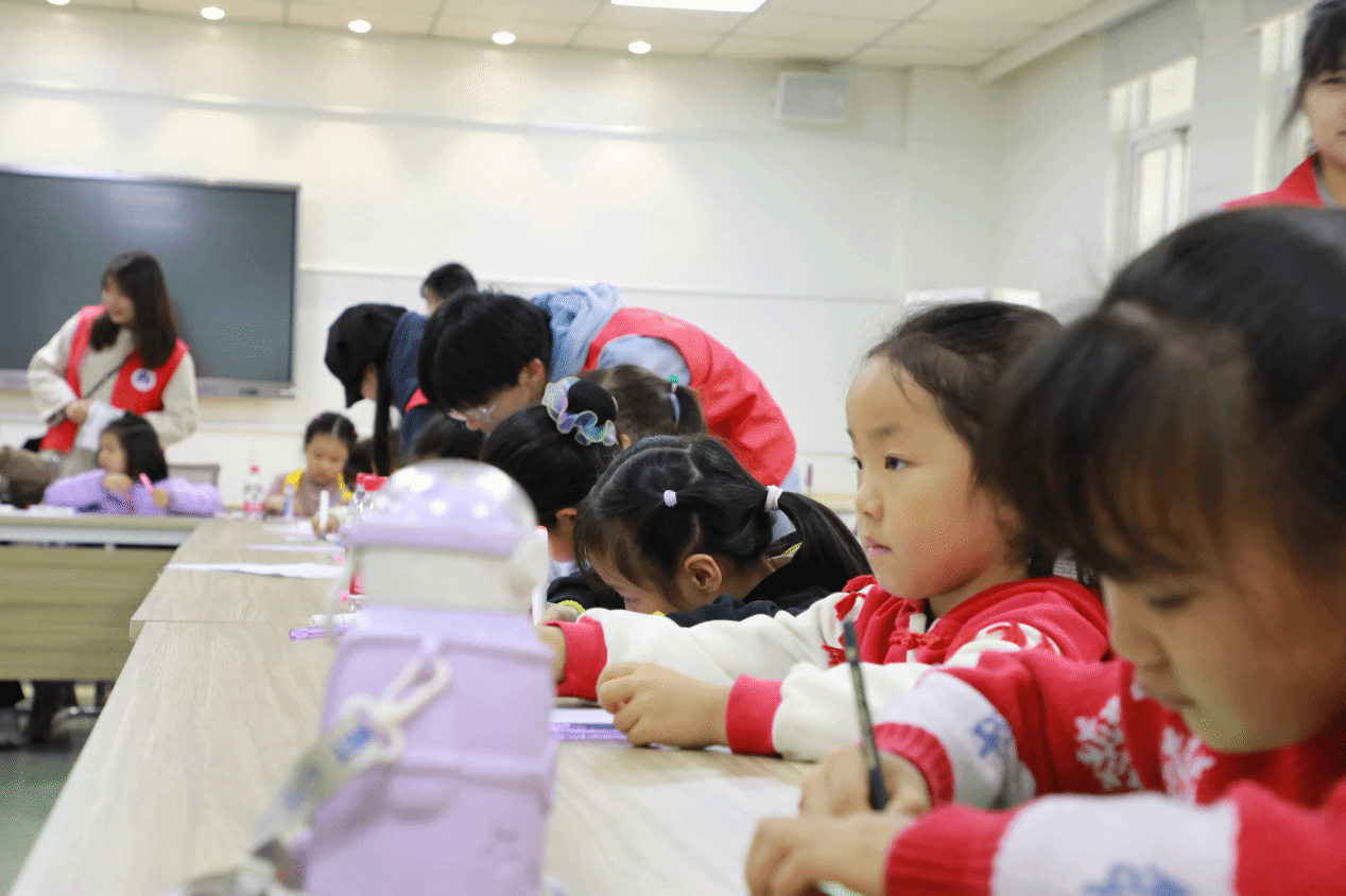 随后,志愿者陪伴小学生一起制作非遗粮食画并开展科普小课堂活动。活动过程中,大学生志愿者们详细讲、耐心答、指导做,小朋友们认真听、积极问、主动做,“一大一小”配合默契,互动热烈,并共同签订了“光盘行动”承诺书。