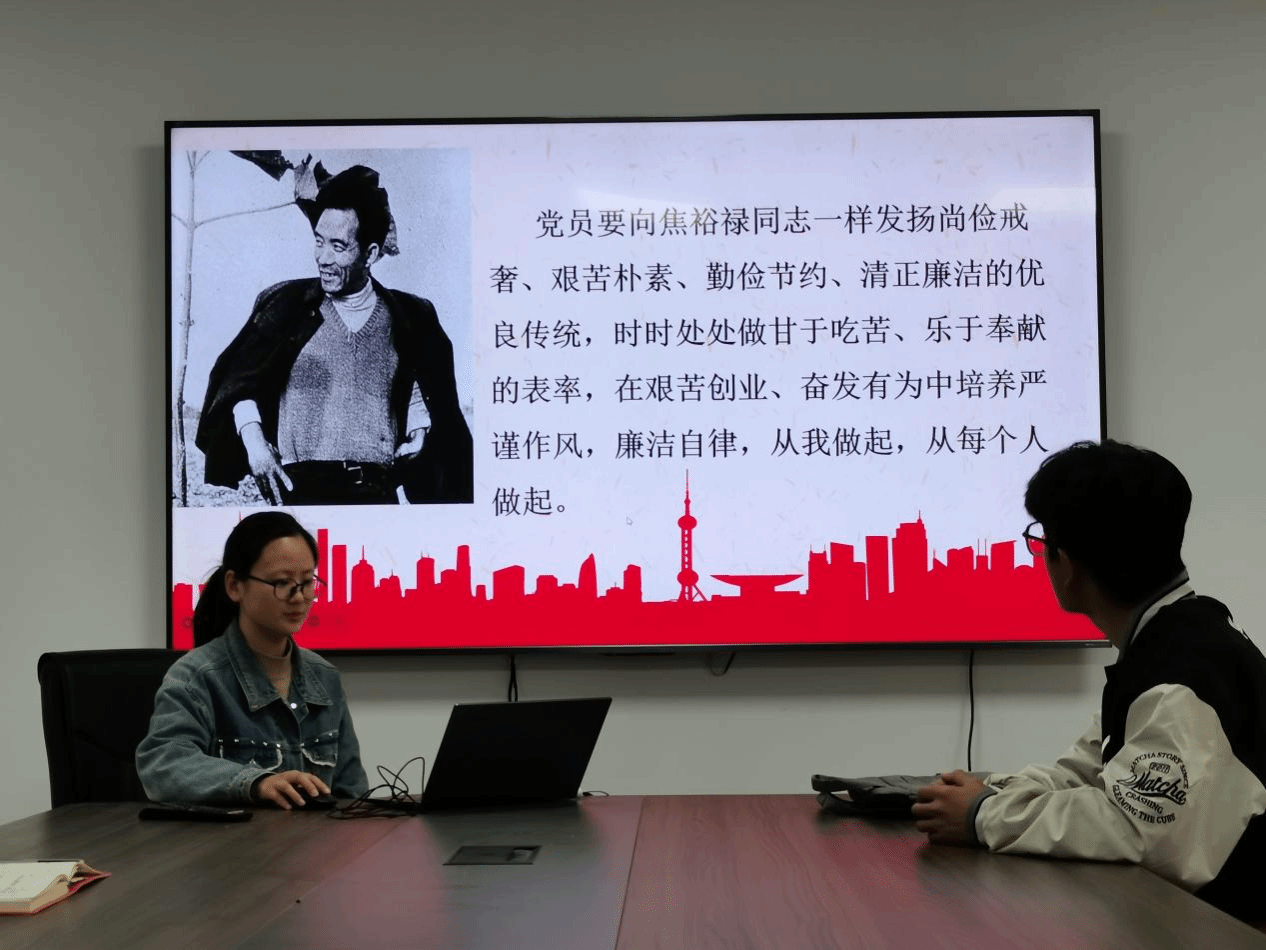 学生支部组织委员尚思佳则通过分享违纪违法的典型案例与廉政模范的先进事迹,为党员们展示正反形象的强对比。她特别讲述了焦裕禄同志的感人事迹,强调其清廉自律、拒绝特权的精神品质,激励大家以焦裕禄为榜样,不断提升自身的党性修养。