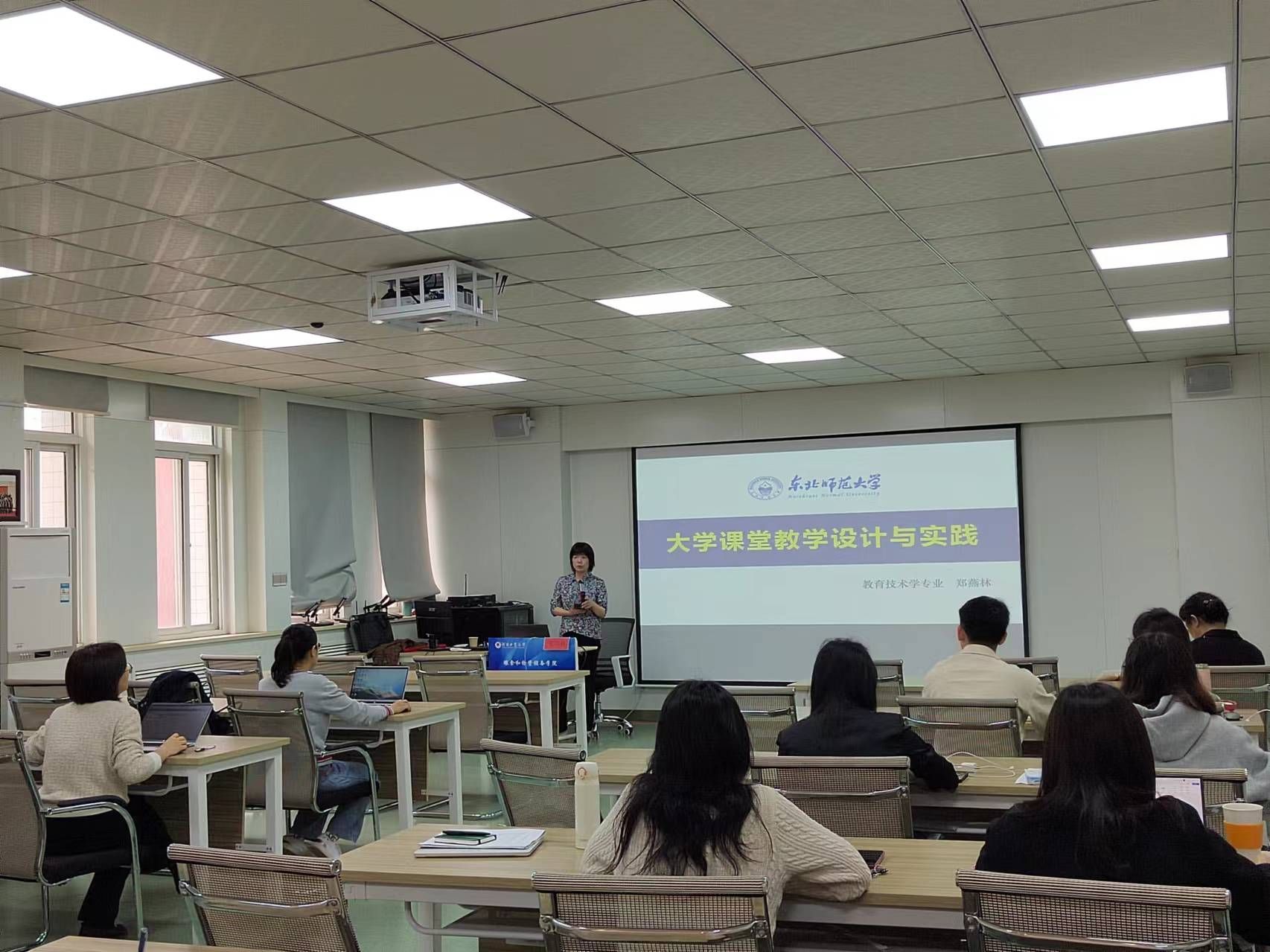 在40202举办“大学课堂教学设计与实践”研究性工作坊。邀请东北师范大学信息科学与技术学院党委书记、教育技术专业教授、博士生导师郑燕林教授进行专题培训。学院全体教师参加了本次培训,培训由学院教学副院长张玉荣主持。