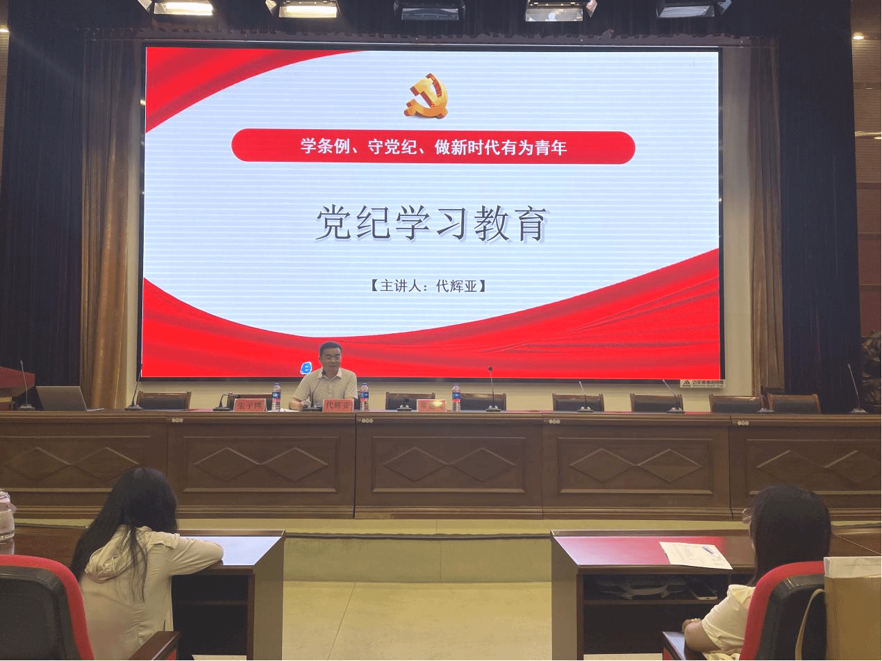 党委书记代辉亚在学校8527会议室,以“学条例、守党纪、做新时代有为青年”为题,为全体入党积极分子讲授了一堂生动的党纪学习教育专题党课。