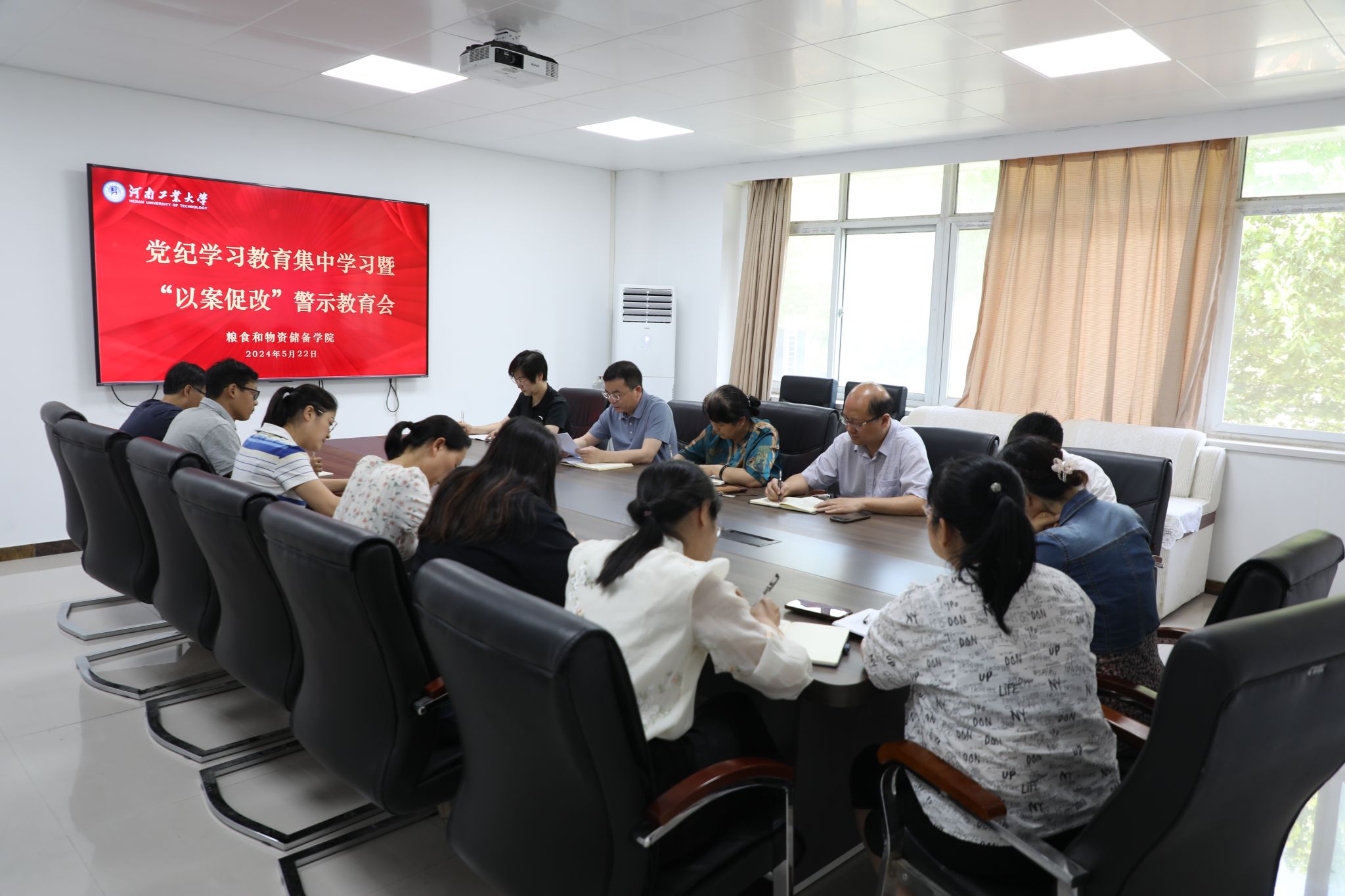 在崇实楼212会议室召开“以案促改”警示教育会,学院全体领导班子、各教工党支部书记、各科室、系、中心负责人参加会议。会议由学院党委书记代辉亚主持。