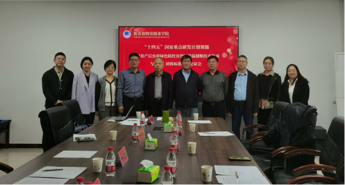 就“十四五”国家重点研发计划课题“粮食产后虫霉绿色防控及智能低温储粮技术集成与示范”团体标准——《小麦粉储藏期间害虫防治技术规程》、《稻谷控温结合二氧化碳气调储藏技术规程》进行了立项论证会,论证专家有河南省农业科学院武予清研究员、河南省农业技术推广总站毛凤梧研究员、中原粮食集团张会军总工程师,学院学术副院长陈亮教授、吕建华教授、赵妍副教授、吕好新博士等参加了交流研讨。