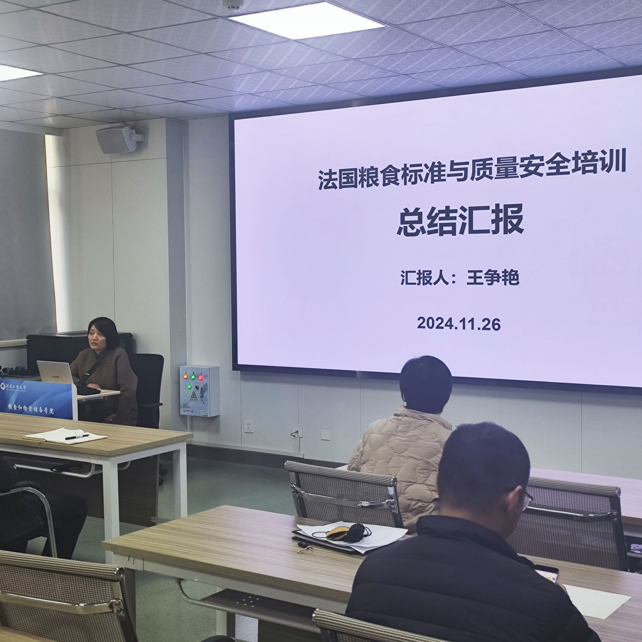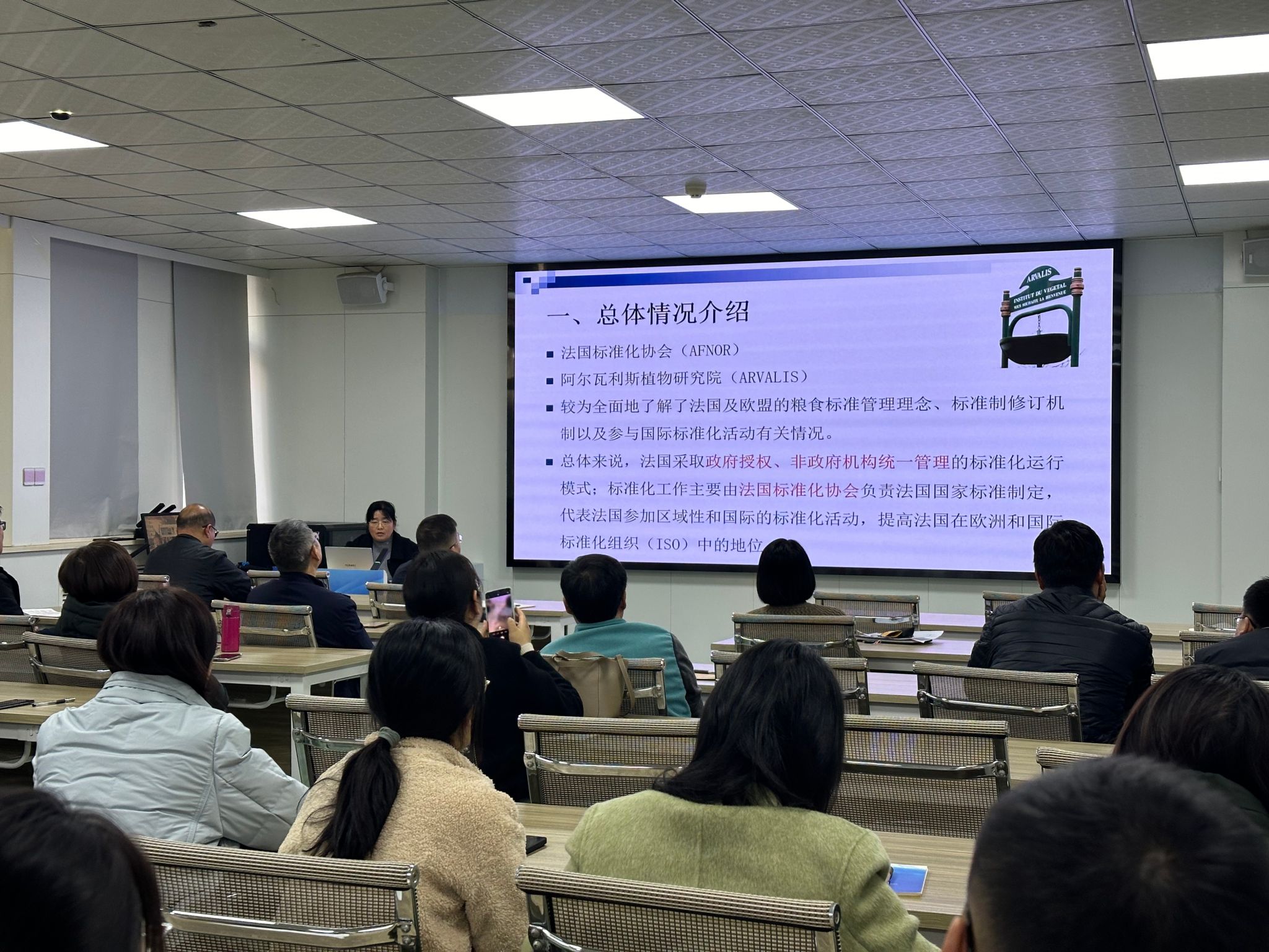 40号楼202捷赛粮储厅就本次赴法国参加粮食标准与质量安全培训的收获进行了总结汇报。汇报内容包括法国粮食质量安全管理和中法标准化工作两方面。