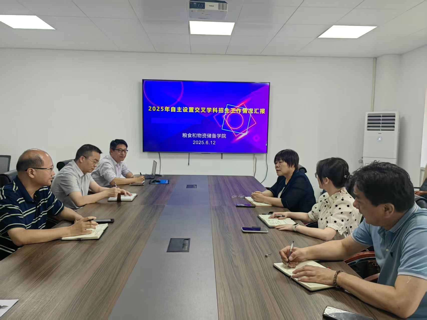 代辉亚首先代表学院对杨院长一行的到来表示热烈欢迎,并简要介绍了学院总体情况和自主设置交叉学科的基本情况。阎磊介绍了交叉学科建设工作过程,陈亮介绍了2025年自主设置交叉学科研究生招生工作开展情况和后续培养工作计划安排。