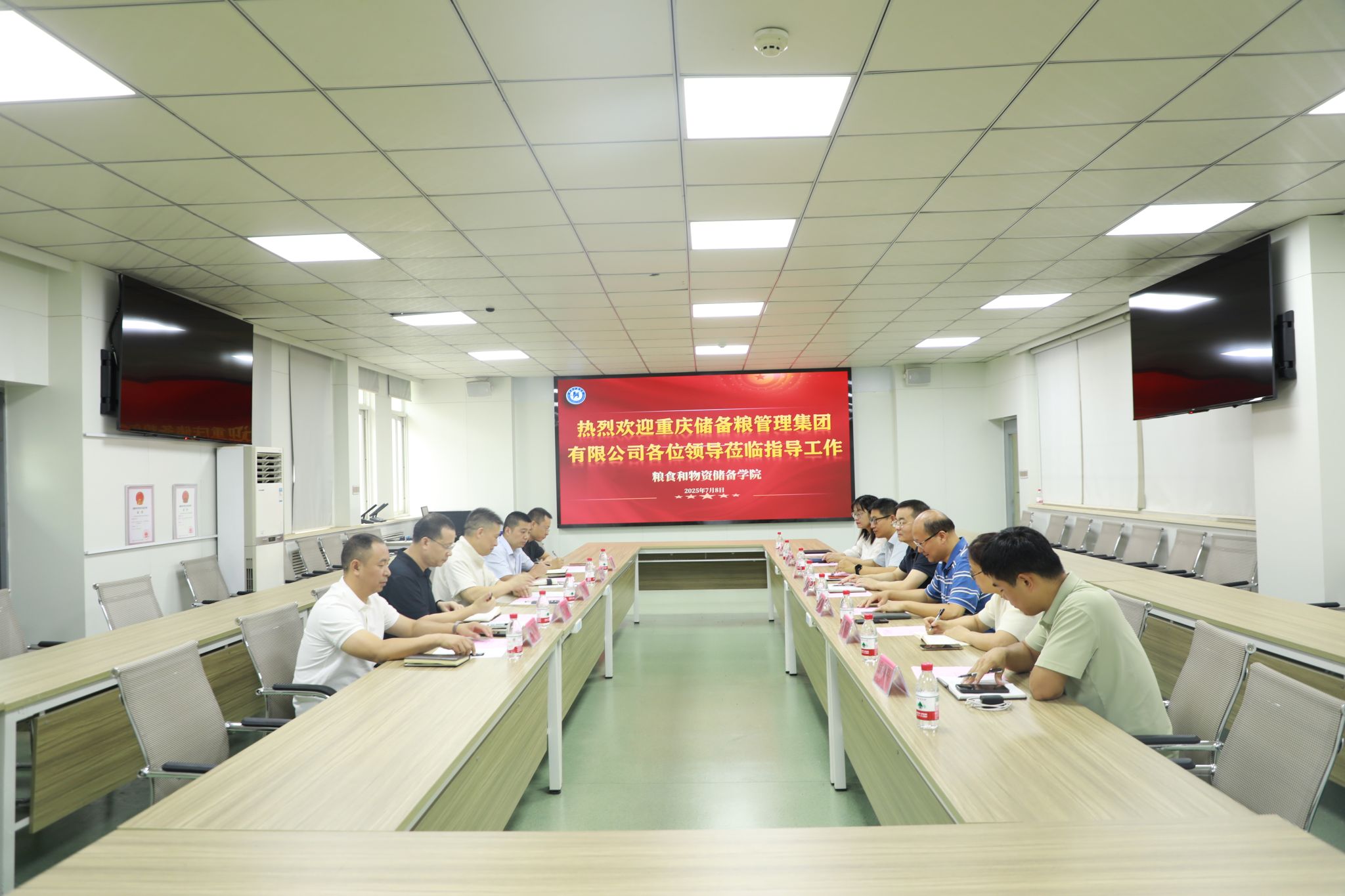 的发展历程、特色方向、学科规划、社会服务情况等。针对叶成礼等关心的问题,介绍了学院当前的主要科研方向,本、硕、博等人才培养情况,仓储技术培训情况,职业技能等级认定情况以及近年来主要的技术咨询情况,期待与重庆储备粮管理集团有限公司开展更深层次、更加务实的交流与合作。