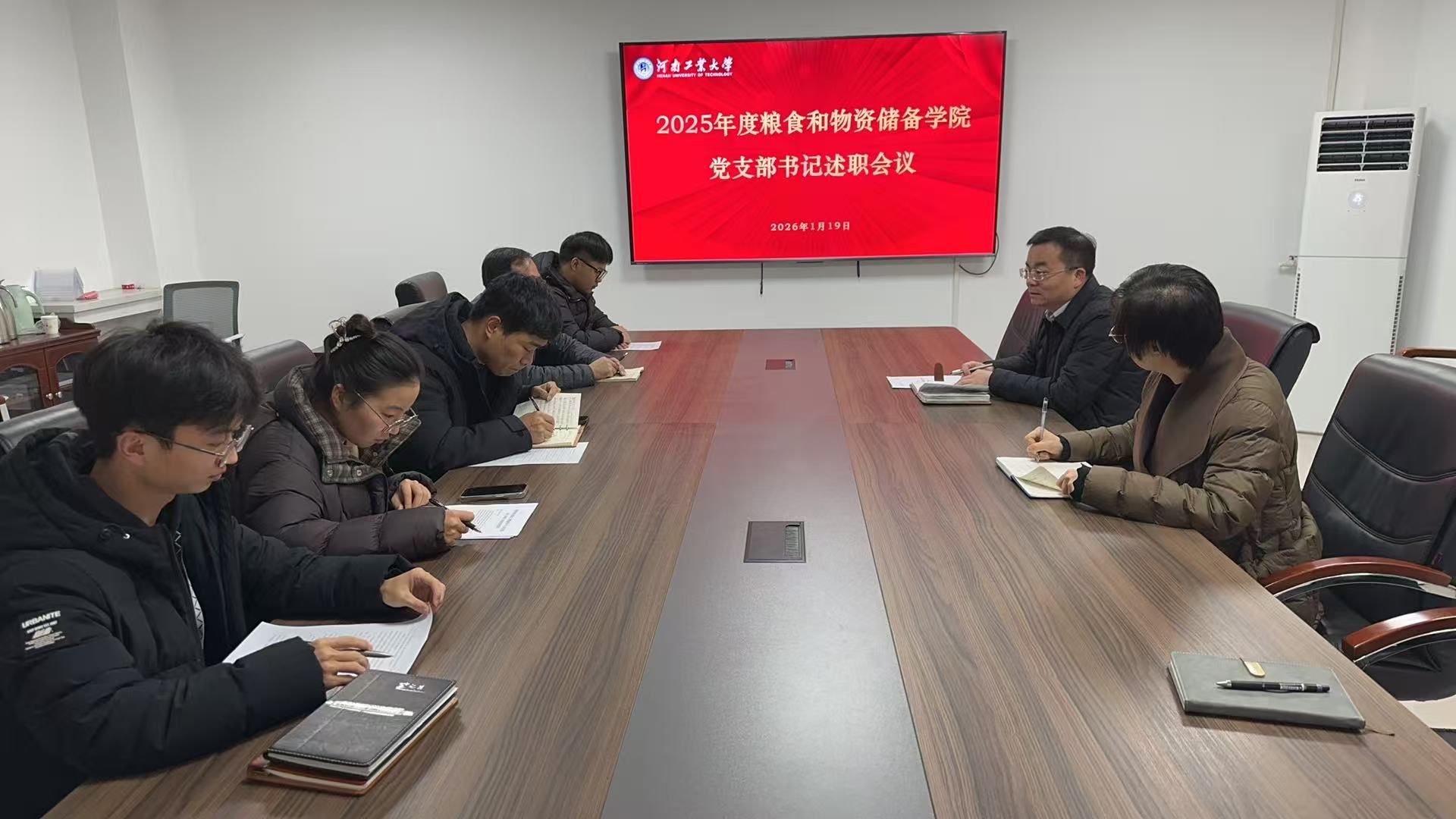 召开2025年度支部书记述职评议会议。学院党委书记代辉亚主持会议并讲话,学院党委副书记梁艳及各党支部书记参加会议。