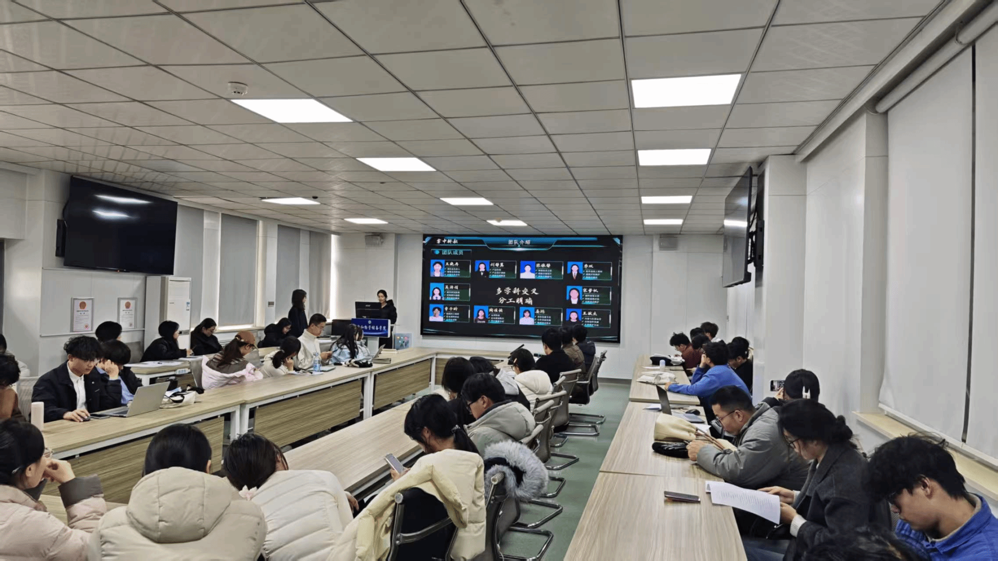 于崇实楼202教室举办“挑战杯”院赛选拔推进会。学院党委副书记梁艳、团委副书记刘宇畅,学院优秀创新创业导师张咚咚、陈鹏枭担任评委,全体辅导员及各参赛团队参与本次活动。